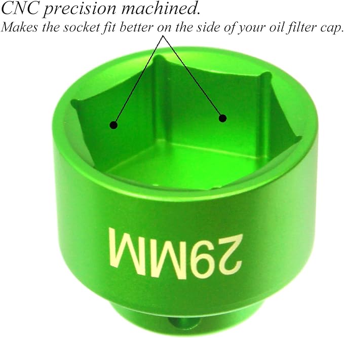 - 29mm oil filter socket fits oil filter caps on dodge cummins and other vehicles that use 29mm filter caps