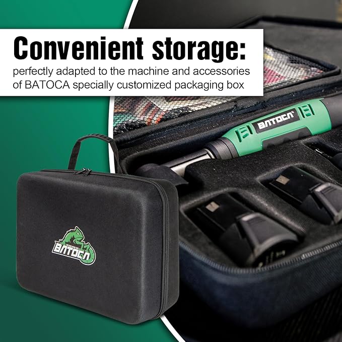 - A Breeze to Store Away: BATOCA S6 mini polisher will be a good tool to have in your toolbox which has BATOCA specially customized packaging box, perfectly adapted to the BATOCA S6 mini buffer polisher and all the accessories.