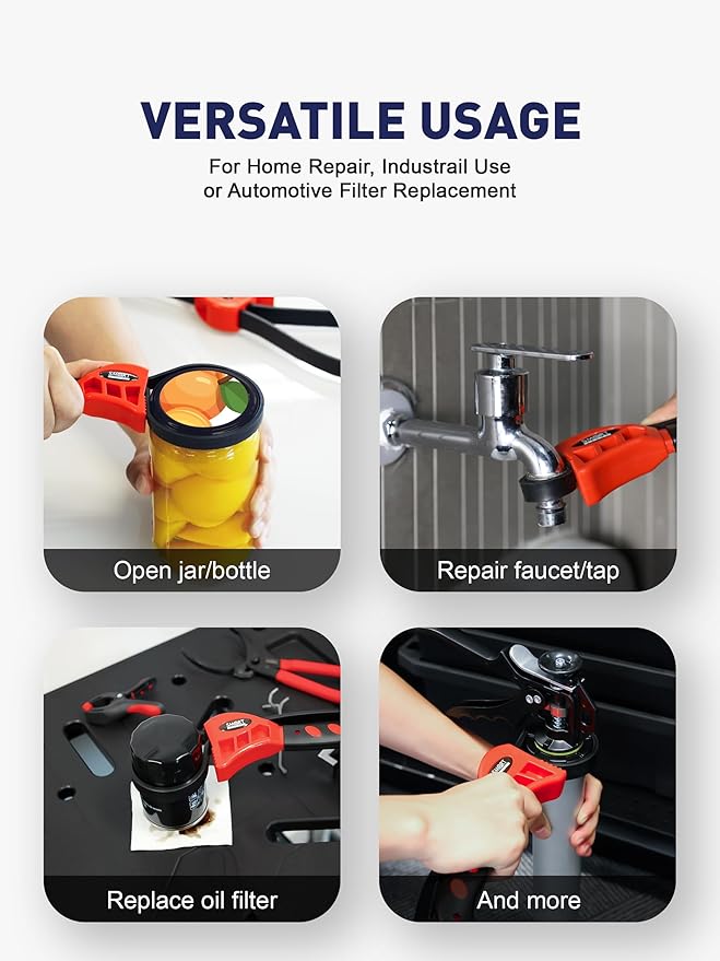 - Truly Versatile for Home, Garage, and Industry: From opening stubborn jars and replacing water filters to professional automotive and industrial repairs, this is the only wrench you need for dozens of applications around the house, garage, and workshop