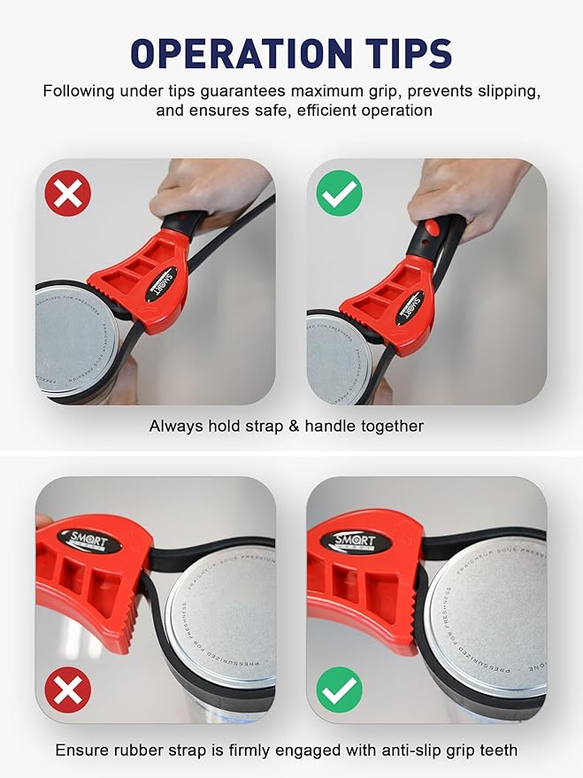 - Professional Operation Guide for Optimal Performance: Always hold the rubber strap and handle together to distribute force safely and ensure the rubber strap is fully engaged with the anti-slip grip teeth. This correct technique guarantees a non-slip, powerful grip and prevents damage to both the tool and the object