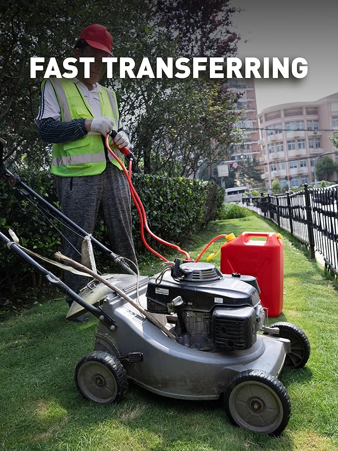 - 【Efficient Lawn Mover Pump】This fluid transfer hand pump siphons 2.5–3 gallons per minute (repeated tested - this hand fuel pump siphon 2.7-3 gallons water within 60 seconds)
