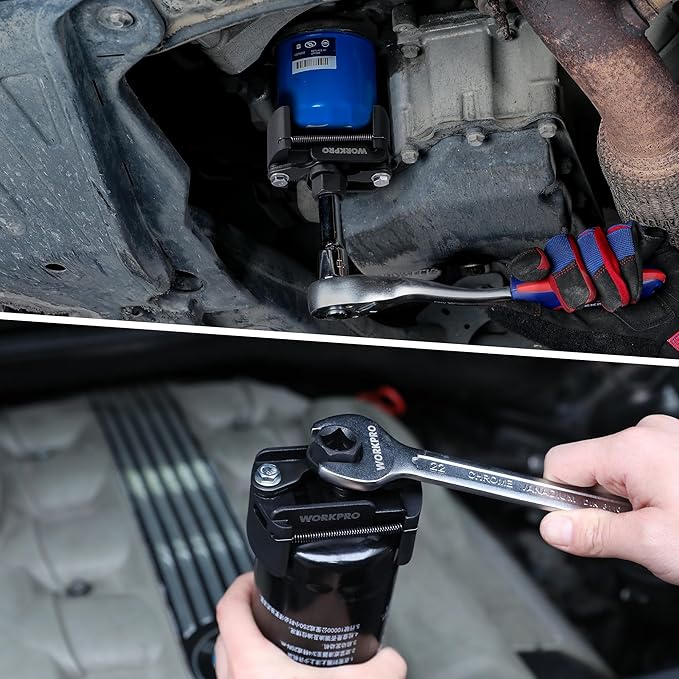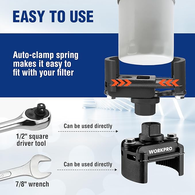 WORKPRO Universal Oil Filter Wrench Adjustable with Auto-Clamp Spring, Oil Filter Removal Tool, Oil Filter Change Set, Ideal for Engine Filters, Conduit, & Fittings