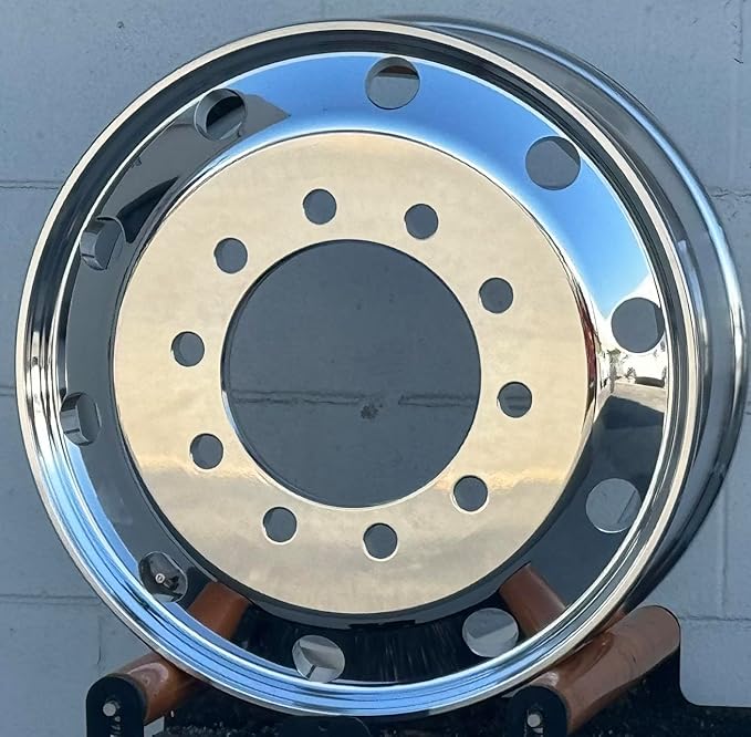 ALUMINUM WHEELS 22.5 X 8.25 FLAT FACE & HUB PILTED(METRIC), HIGH POLISHED FOR LIFTED AXLE OF DUMP TRUCK, TIRE:255/70R22.5