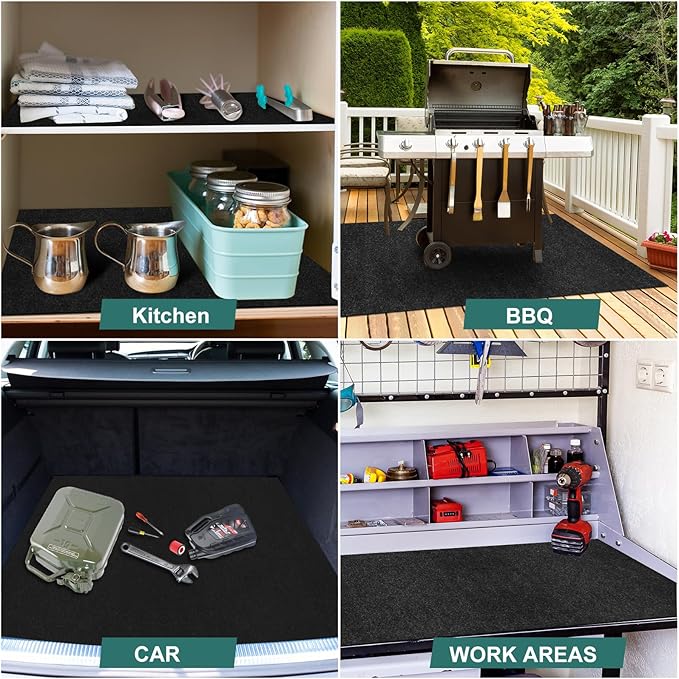 - Cut to Any Size: Our garage oil spill mats, sized at 36" x 60", are perfect for motorcycles, cars, garage floors. They can be easily cut to fit any space such as car trunks, cabinets, basements, deck patios, barbecue stall etc with scissors without fraying, allowing you to customize the shape to fit your specific garage space.