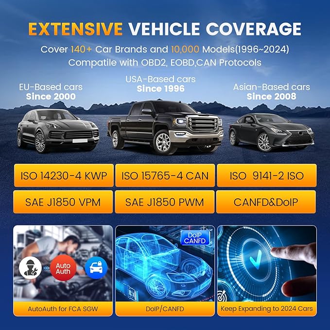 - [Wireless Update & Back-up] THINKSCAN 689BT is a comprehensive scanner automotriz, supports 28 languages, 140 worldwide car brands , like passenger cars, 12v pickup, hybrid vehicles and suvs. AutoAuth for 2018+ FCA cars . CAN FD & DoIP protocols boost 2X faster communication. Packaging configuration gateway accessories, saving you 60 bucks. It is an fantastic choice for DIYers, repair store.