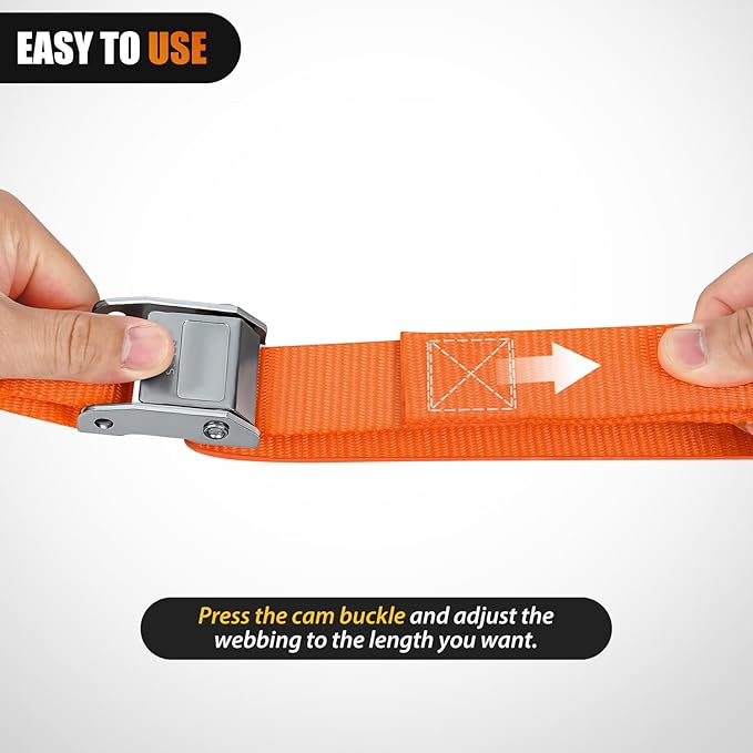 - Easy To Use: Cargo tie down features a standard cambuckle that allows ease of operation, just press the cam buckle and adjust the webbing to the length you want.