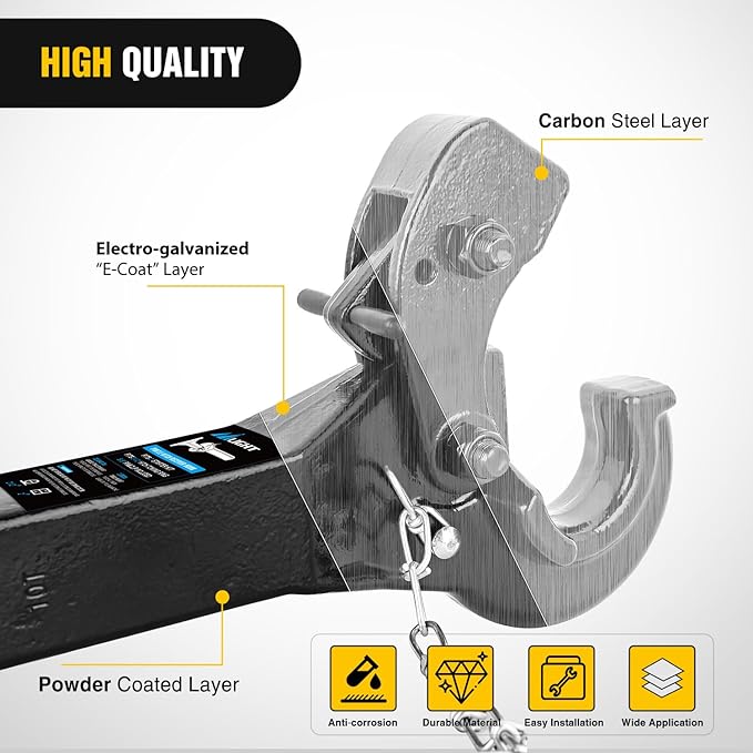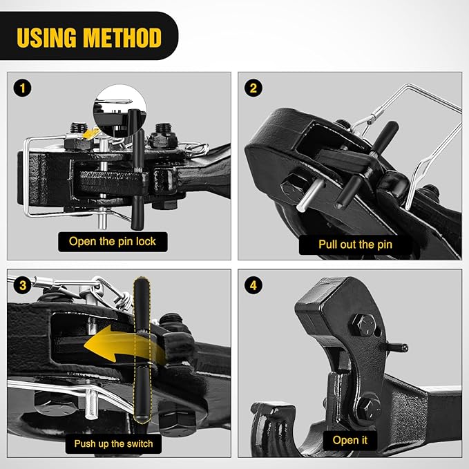 - 【Secure Connection】To ensure a reliable connection to your trailer, this pintle hitch comes with a spring-loaded arm. The arm locks down onto the hook and can be secured with the included safety pin