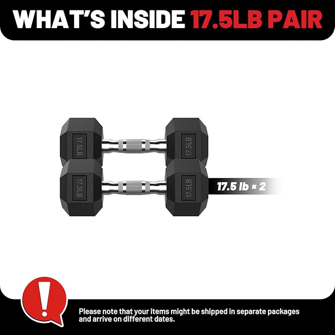 PAPABABE HEX Dumbbell Set 2.5-125lb, Rubber Encased Home Gym Dumbbells, Exercise & Fitness Weights Dumbbells for Women & Men, Hand Weight for Strength Training