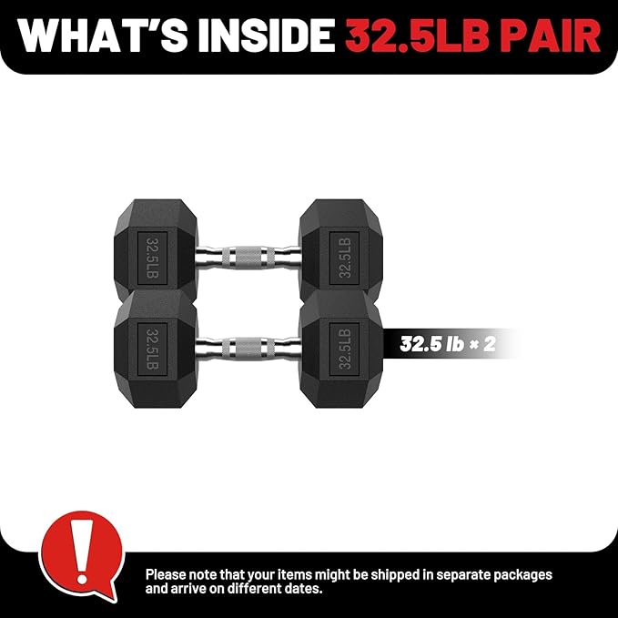 PAPABABE HEX Dumbbell Set 2.5-125lb, Rubber Encased Home Gym Dumbbells, Exercise & Fitness Weights Dumbbells for Women & Men, Hand Weight for Strength Training