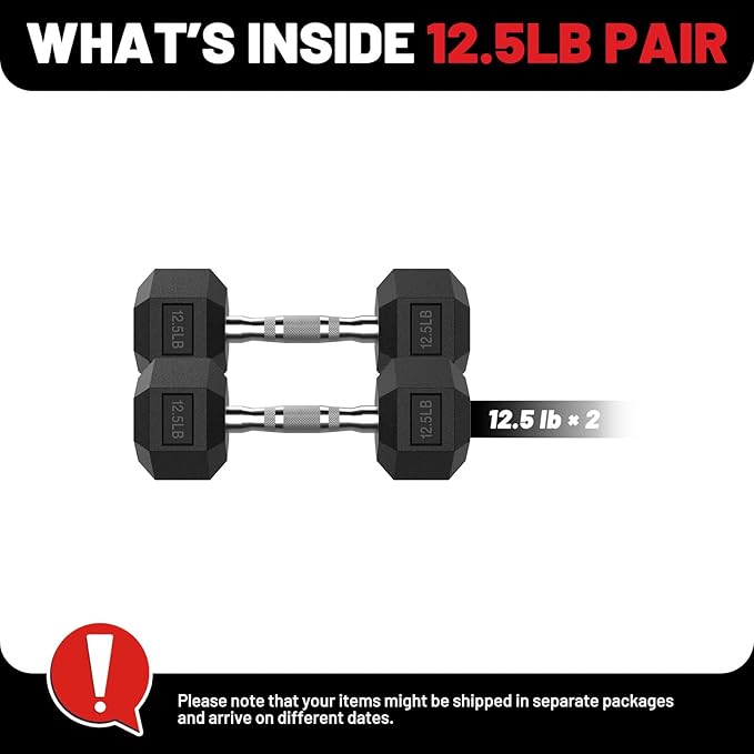 PAPABABE HEX Dumbbell Set 2.5-125lb, Rubber Encased Home Gym Dumbbells, Exercise & Fitness Weights Dumbbells for Women & Men, Hand Weight for Strength Training