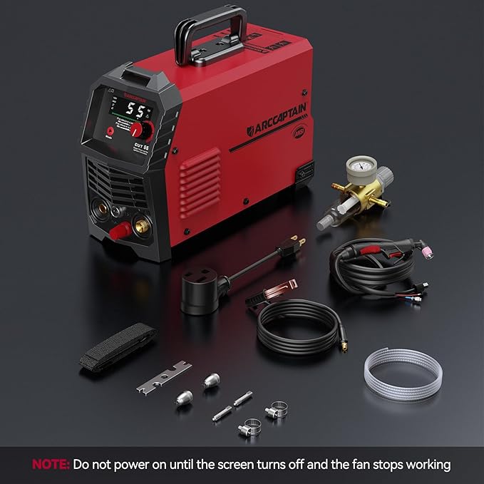 - 【Safety & Durable 】 ARCCAPTAIN CUT55 plasma cutter have passed a variety of professional tests and certifications including FCC and ANSI standards before leaving our factory. Post time function controlling the cooling time of the torch head to extend the service life of consumables.