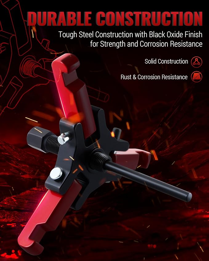 - Premium Material: This harmonic balancer puller is crafted from heat-treated, high-hardness steel. Its surface is coated with anti-oxidation, corrosion-resistant material, ensuring it is wear-resistant, highly durable, and not prone to breakage