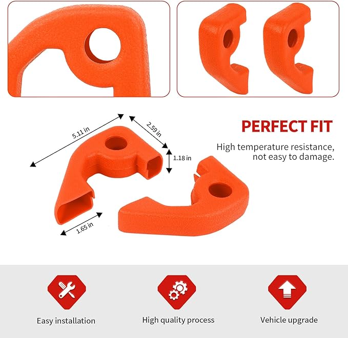 - Function: It protects the finish of the hooks, and improves the look of the plain tow hooks.