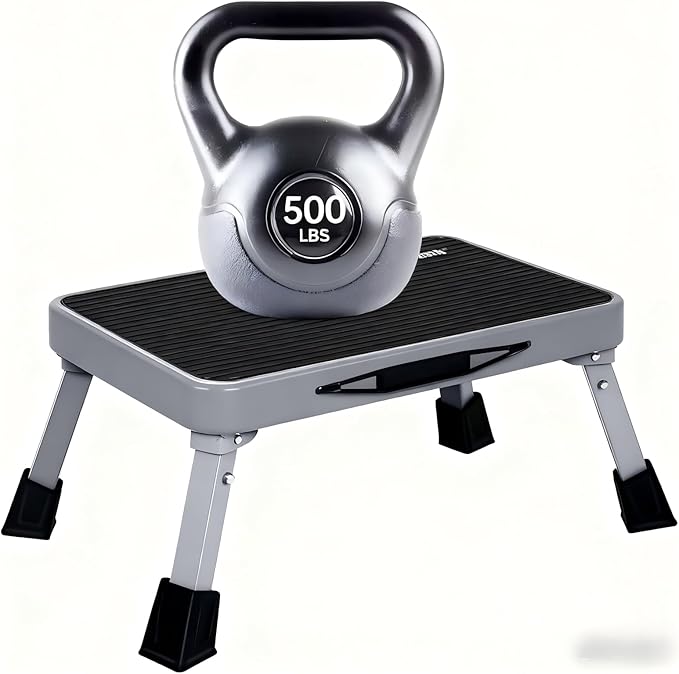 RV Step Stool Foldable 1-Step Ladder Sturdy Metal Stable Step Stool with a Non-Slip Platform Supports up to 500 lb with Non-Slip Rubber Feet, Easy to Carry