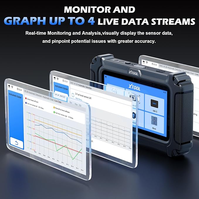 - Advanced 4-System Diagnostics & Real-Time Monitoring: The XTOOL D5 goes beyond basic OBD2 diagnostics by offering 4-system diagnostics (Engine, ABS, SRS, and Transmission) and Full OBD2 Diagnostics. It can read DTCs and display up to 4 PIDs of live data for each system. You'll get clear, real-time data to monitor your vehicle's health and pinpoint potential issues quickly. From pinpointing warning lights to preventing costly repairs, it gives you the clarity and control for confident vehicle maintenance. ๐๐๐๐: Some vehicles may display 3 systems due to integrated Engine and Transmission control units. We recommend confirming your vehicle's system architecture prior to purchase.