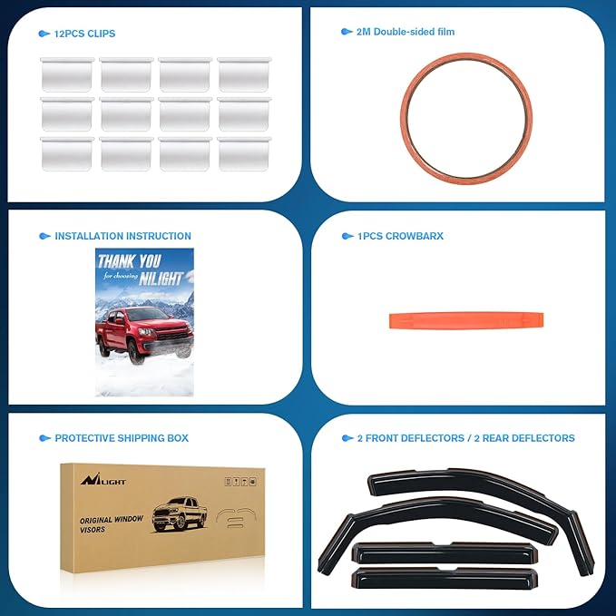 - Advantage:Nilight window deflectors are great for all weather conditions,help improve ventilation inside and outside your car to reduce mirror and window fogging while increasing air circulation。With our side window deflectors, it deflects the rain and noise away from your windows to make your driving more enjoyable