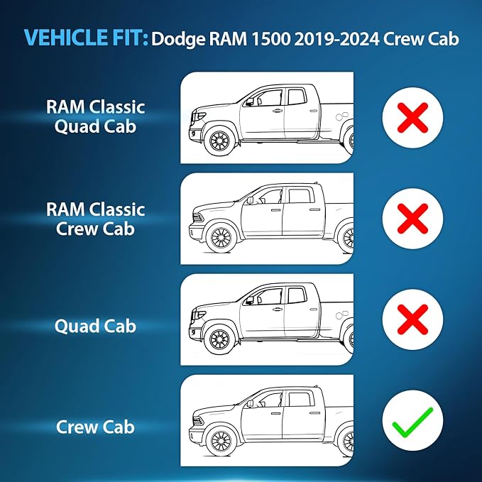 - Material Acrylic : Vehicle Service Type Dodge RAM 1500 2019-2024 Crew Cab
