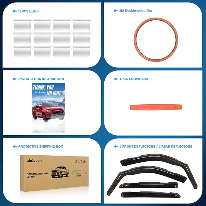 - PACKAGE INCLUDED:4 PCS Rain Guards,12pcs clips,Crowbar 1pcs,78inch double-sided tape and installation instruction