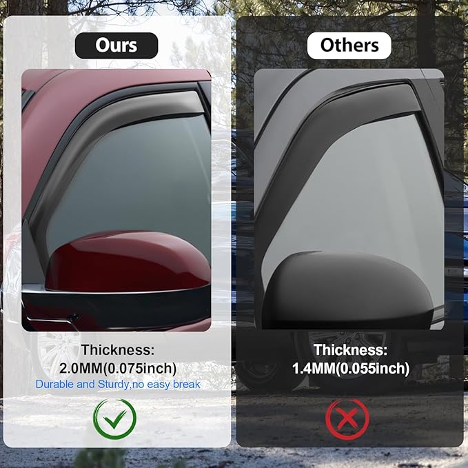 - Advantage:Nilight window deflectors are great for all weather conditions,help improve ventilation inside and outside your car to reduce mirror and window fogging while increasing air circulation。With our side window deflectors, it deflects the rain and noise away from your windows to make your driving more enjoyable
