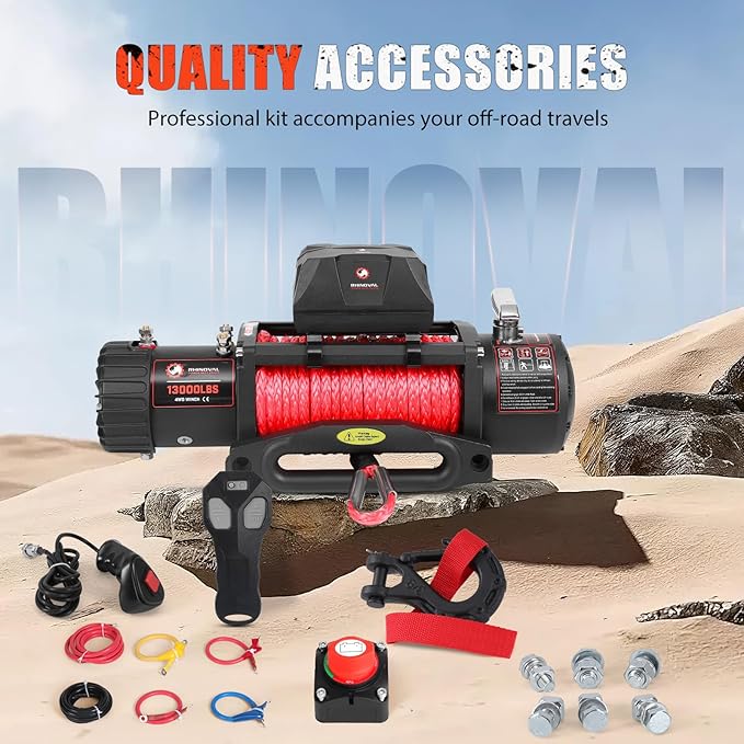 - Powerful Pulling Power: This electric winch features a massive 13,000 lb load capacity, equipped with a high-performance 6.4 HP series-wound motor, a cold-extruded 3-stage gear train and a strong synthetic rope, making it ideal for heavy-duty off-road vehicles, trucks, SUVs, trailers, flatbeds, and other hauling tasks.