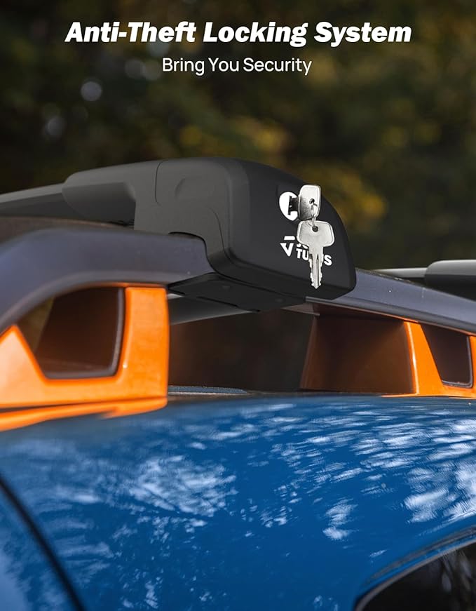 - Safety and Durability: JOYTUTUS roof rack crossbars are made of upgraded locks and high grade aluminum with plastic feet at the base. Aluminum is 30% lighter than steel, allowing our crossbars to withstand more stress at 1/7 the weight of an all-steel frame