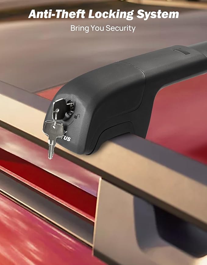 - Safety and Durability: JOYTUTUS roof rack crossbars are made of upgraded locks and high grade aluminum with plastic feet at the base. Aluminum is 30% lighter than steel, allowing our crossbars to withstand more stress at 1/6 the weight of an all-steel frame
