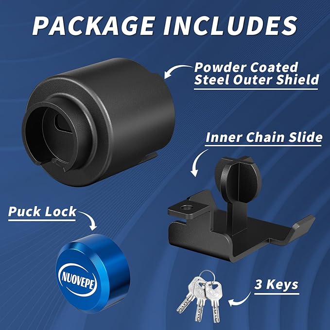 - ONE‑CLICK LOCKDOWN: Say goodbye to fumbling with pins or wrestling with clumsy mechanisms. A single push of the patented puck‑style button locks your coupler in an instant. When it’s time to roll, three unbreakable keys ensure quick access and will have you back on the road in seconds. Quick to secure, quicker to free—NUOVEPE trailer hitch locks so you can spend less time fiddling and more time adventuring.