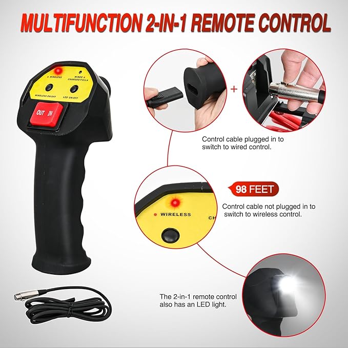 - 3-in-1 SMART REMOTE CONTROL: Nilight 12 volt electric towing winch has a new generation of wireless remote control, Combines a wired remote control with an infrared wireless remote control power system (signal control range up to 98 feet). And with LED lights for illumination, it allows you to operate accurately from a distance, providing extra convenience and safety