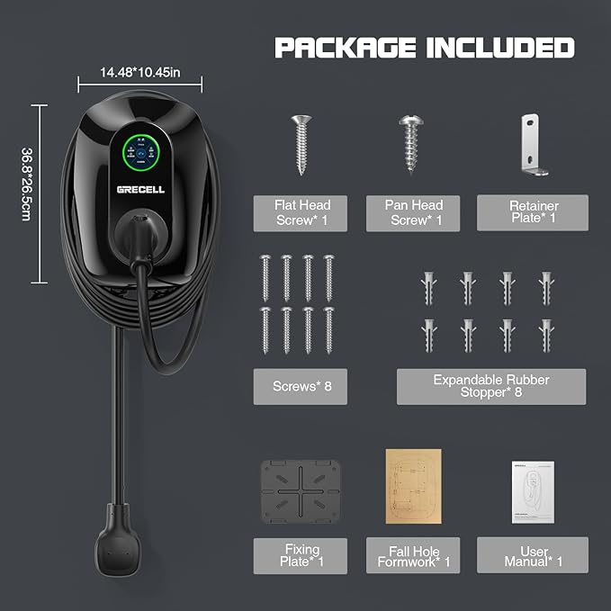 - 【Level 2 EV Wall Charger】GRECELL Level 2 Wall Charger is designed to make EV charging faster and more efficient. Extra-long 25FT charging cord fits in most garages and driveways, giving you more freedom to charge your car at home or outdoors