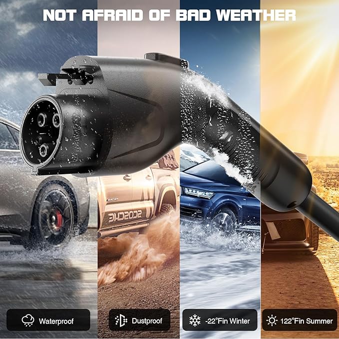 - 【Fast Charging & Adjustable Current】11kW up to 48A charging speeds up to 41 miles/hour. This electric car charger charges 9 times faster than a 110V outlet. You can charge confidently even in the coldest temperatures (-22℉). (plug-and-play charging with a maximum current of 40A, "Smart Life" adjustable to a maximum of 48A)