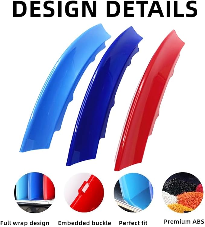 - [Decoration effect] It goes well with the front grid and has a wide variety of colors to match any color exterior decoration. Three-color mixed color (red / blue / light blue), of course, as Bimmer fan, you definitely know the meaning of these three colors. It makes your car look sportier like a performance car.