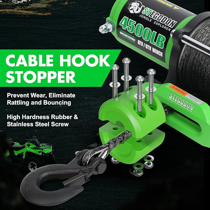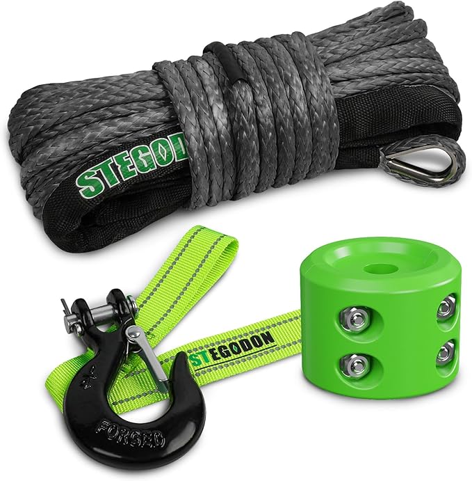 - 1.STEGODON 1/4'' x 50ft synthetic winch rope made from 12-strand tough construction UHMWPE,treated with a special coating for UV and abrasion resistance. Durable and more wear-resistant than equivalent steel winch cable, it can withstand breaking strengths up to 10,000 lbs