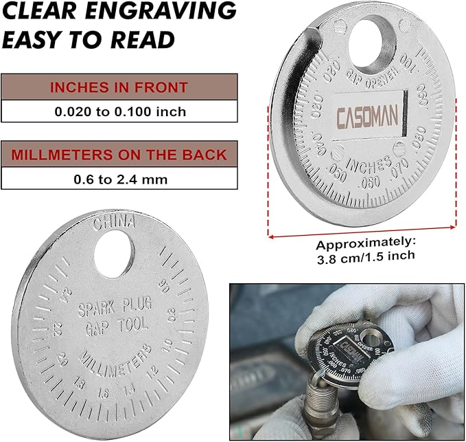 - Set include: 6PT spark plug socket: 9/16", 5/8", 18mm, 3/4", 13/16"; 12PT spark plug socket: 14&16mm; U-joint; Spark plug gapper; Extension bar: 10-Inch.