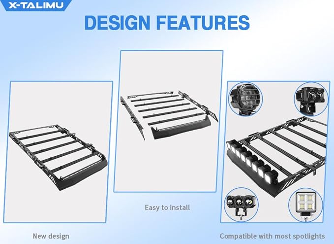 - Plenty of inbuilt mounting holes and slide tracks offer multiple installation of fuel and water tanks, top and side tents, shovel, recovery board, spare tire, spot lights and many more gears
