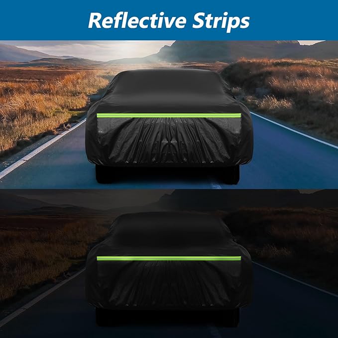 - 【All-Weather Protection】Made black 420D Oxford cloth and 2 times PU waterproof fabric as material, ensuring its quality is tough, durable, and safe in strong wind conditions. Protects your vehicle and paint from rain, snow, sun, bird droppings, pollen, dust/dirt - suitable for all seasons (spring, summer, fall, winter).