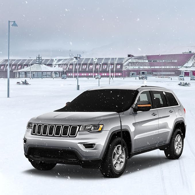 - 【Enhanced WATERPROOF 600D FABRIC】BOGI windshield cover for ice and snow is made of tough 600D Oxford fabric with the highest density waterproof material bottom layer, which provides superior snow protection for your windshield. Our frost guard windshield cover is based on the 2024 manufacturing technology, making the windshield snow cover thicker, more wear resistant and waterproof. Effectively protects your car from all snow-related damage such as frost, hail, blizzards, sleet and storms.