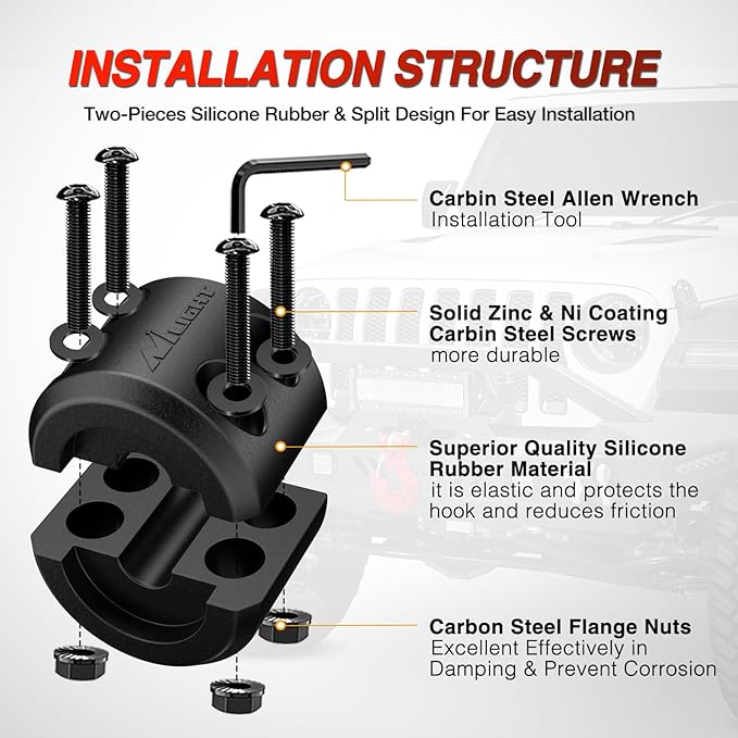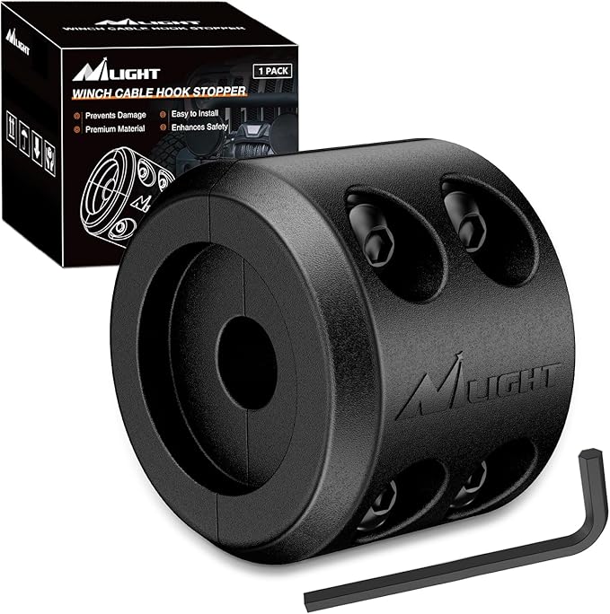 - EASY INSTALLATION: Nilight Winch Cable Hook Stop is a Two-piece Silicone Rubber Design with 4 Strong Carbon Steel Bolts, 4 Lock nuts and 4 Washers, with the Addition of a Portable Allen Wrench Tool and a Split Design for Easy Installation