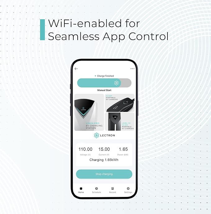 - WIFI & APP CONNECTIVITY - Monitor and control your EV charging remotely through the Lectron app. Stay updated on charging status and adjust the charging current with the touch of a button