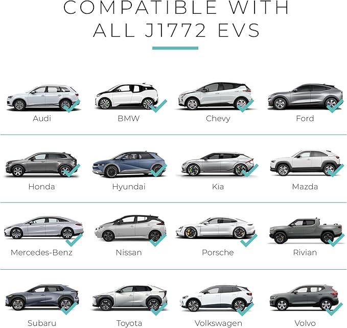 - J1772 COMPATIBILITY - This J1772 charger is compatible with all electric vehicles that use the J1772 standard, including Ford, Rivian, Honda, BMW, Hyundai, Kia, Porsche, Nissan, Chevy and more