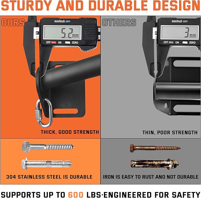 - COMES WITH 2 CARABINERS:Our rogue pull up bar is designed with innovation at heart, coming equipped with two strong holes and high-quality carabiners. You can easily incorporate additional training accessories like suspension straps, training ropes or Yoga straps for a more holistic workout experience