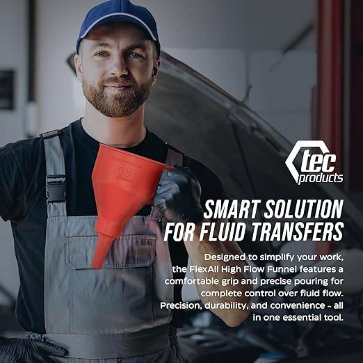 - Proudly USA-Made: Crafted by TEC Products, a family-owned business in Michigan, our Short Neck Funnel represents American manufacturing quality. This flexible funnel is ideal for most automotive fluids. Adds durability to your automotive funnel set.