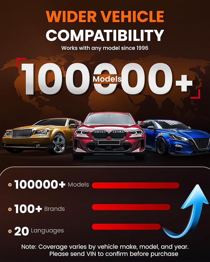 - Wide Vehicle Coverage: Support for 10,000+ Car Models - Achieve outstanding compatibility, supporting most OBD-II vehicles from 1996 to the present across American, European, and Asian brands. With coverage for 100+ car brands and 20+ language interfaces, It provides in-depth access to systems and modules on most OBD-II vehicles (1996+), making it a truly versatile and powerful diagnostic solution for a globalized repair environment.