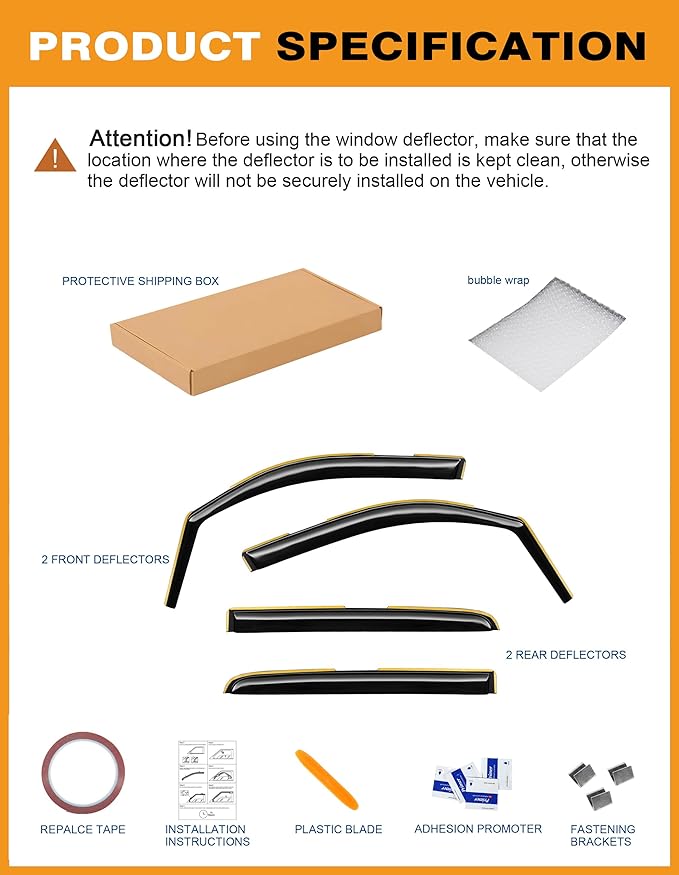 - 【Full-size Side Window Deflectors】This 4-piece set includes passenger, driver side rain guards that create a seamless look that protects you from sun rays, rain drops, and wind while you’re driving with the window down.