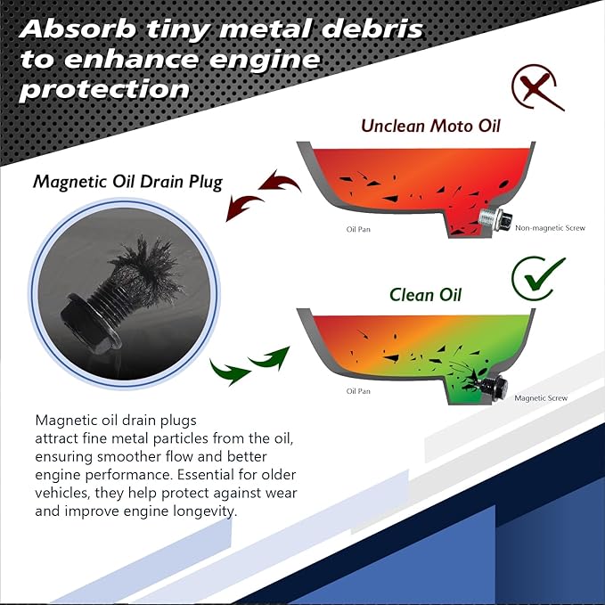 - Magnetic Oil Drain Plug: Features an M12 x1.25 stainless steel magnetic drain plug, designed to capture metal shavings, ensuring improved engine protection and extending engine life.