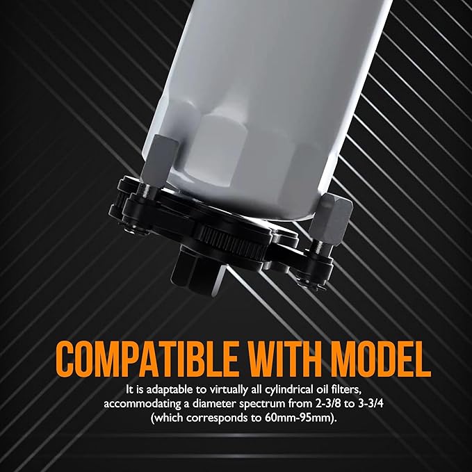 - [COMPATIBILITY] - It is compatible with filters ranging in diameter from 2-3/8 to 3-3/4 inches (equivalent to 60 to 95 millimeters). You have the option to operate it using either a 3/8-inch square drive tool or a 5/8-inch wrench or socket.