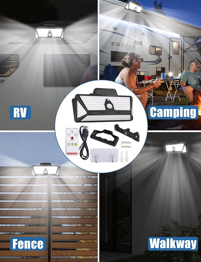 - PACKING: 1 PC 208 solar rv exterior light, mounting accessories, instruction