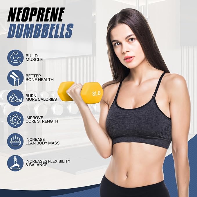 - Versatile and Multipurpose - Achieve a toned back, flat abs and sculpted arms with these versatile dumbbell weights, perfect for overall health, balance, and weight management, they are also great for aerobics, cardio, yoga, and strength-building.
