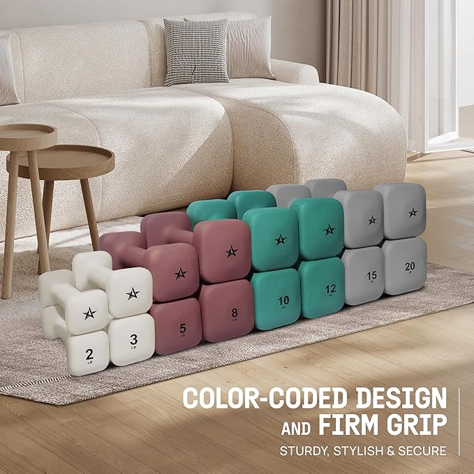 - VIBRANT AESTHETIC COLORS: Available in variety of eye-catching colors; These neoprene dumbbells are great for complementing any home gym setup; With weights ranging from 2 lbs weights to 20lbs dumbbells set of 2, they offer both practicality and striking color for your fitness space