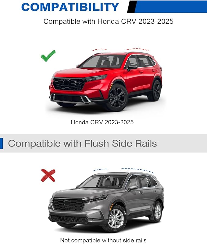 - 【Compatibility】Fit for Honda CRV CR-V 2023 2024 2025 2026 LX, EX, Sport Hybrid, EX-L, and Sport Touring Hybrid, CRV Hybrid Sport, Hybrid Sport Touring (with factory side rails). Please check your vehicle's year, make and model before purchase.