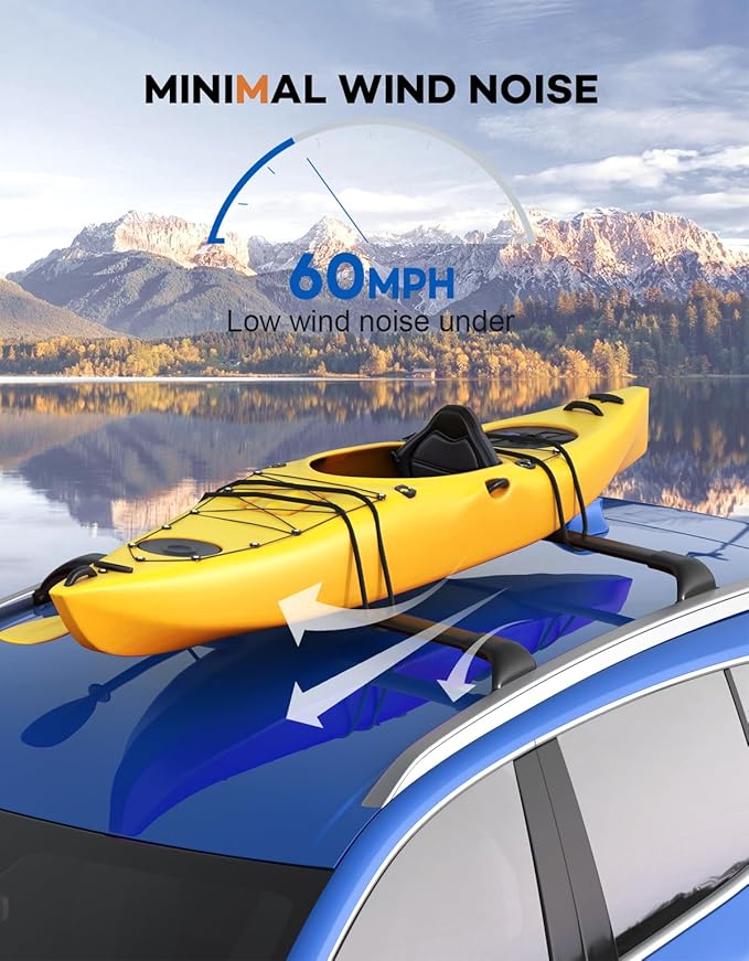 - 【Less Wind Noise 】Low profile & streamline design makes it effective in reducing the wind noise when driving on a high speed. High strength light-weight crossbar constructed by aircraft aluminum ,giving a simple and easier installation onto your car roof.
